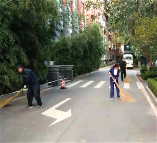 中秋節(jié)、國(guó)慶節(jié)期間監(jiān)管局物業(yè)處組織部分員工對(duì)院落道路清掃落葉。