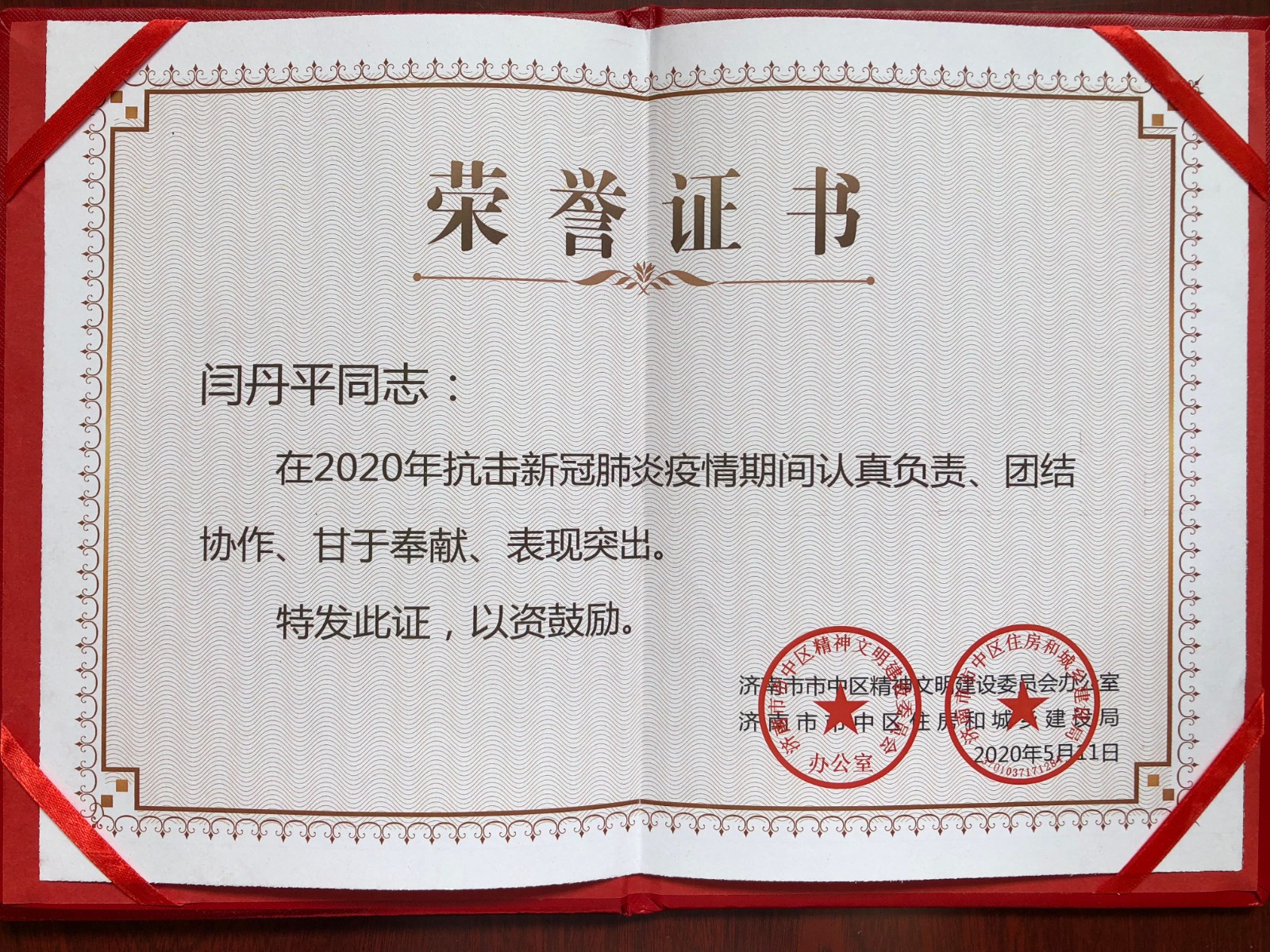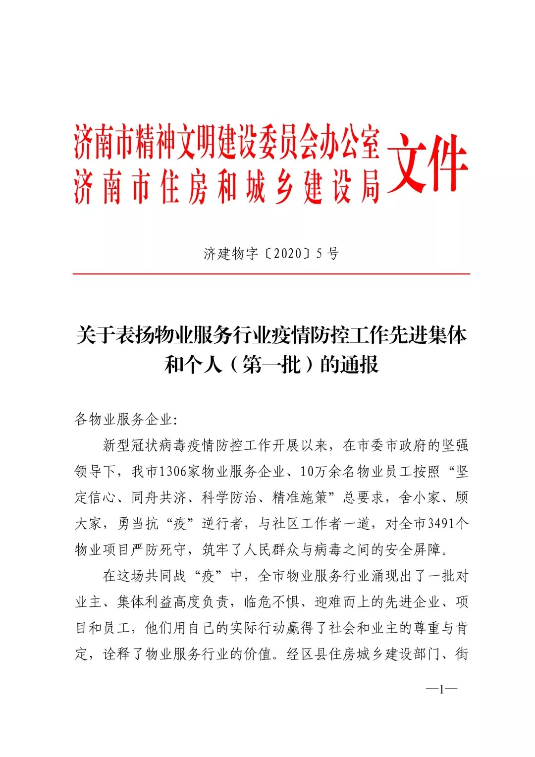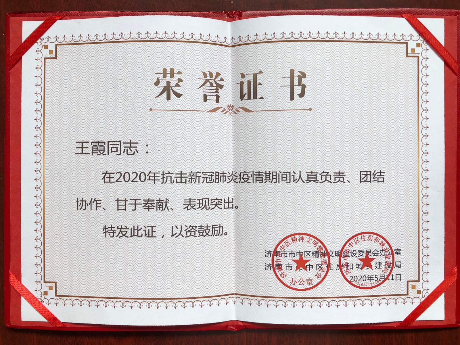 新春伊始,一場猝不及防的肺炎疫情,席卷了祖國大地,在這場突入其來的戰(zhàn)役面前,作為“物業(yè)人”的我們沒有退縮,毅然選擇了,逆風(fēng)而行、迎難而上,為抗擊疫情,日夜值守在疫情防控第一線,為業(yè)主保駕護(hù)航。在此次抗擊疫情工作中,中房物業(yè)各物業(yè)處負(fù)責(zé)人、項(xiàng)目部。分別收到了濟(jì)南市物業(yè)管理協(xié)會、濟(jì)南市市中區(qū)精神文明建設(shè)委員會辦公室、濟(jì)南市市中區(qū)住房和城鄉(xiāng)建設(shè)局頒發(fā)的獎牌、證書等表彰。