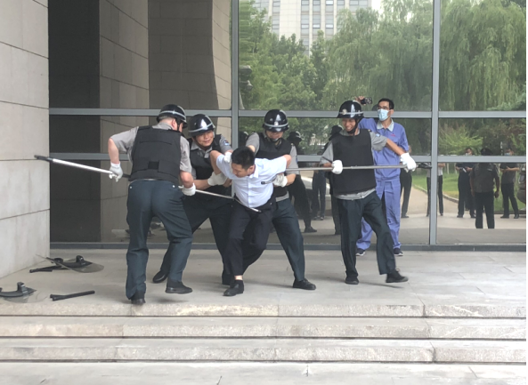 大廈一外租單位由于經(jīng)濟(jì)糾紛導(dǎo)致兩名社會(huì)人員攜帶兇器欲從大廈南門進(jìn)入,到該單位進(jìn)行恐嚇、報(bào)復(fù),被值班秩序維護(hù)人員發(fā)現(xiàn),大廈迅速啟動(dòng)防爆應(yīng)急預(yù)案,對(duì)可疑人員進(jìn)行驅(qū)離,并報(bào)110處置。
