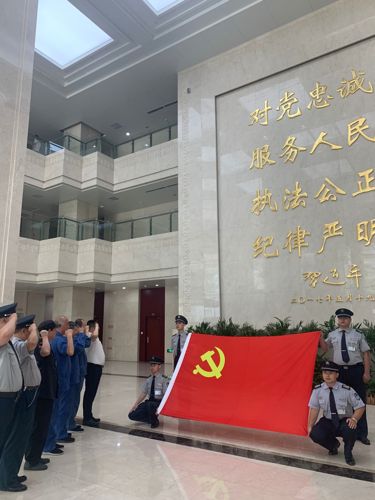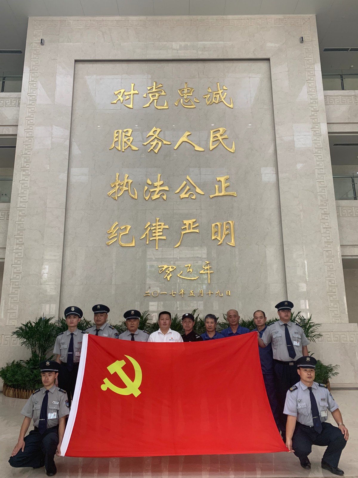 三、物業(yè)處全體黨員在黨旗下合影